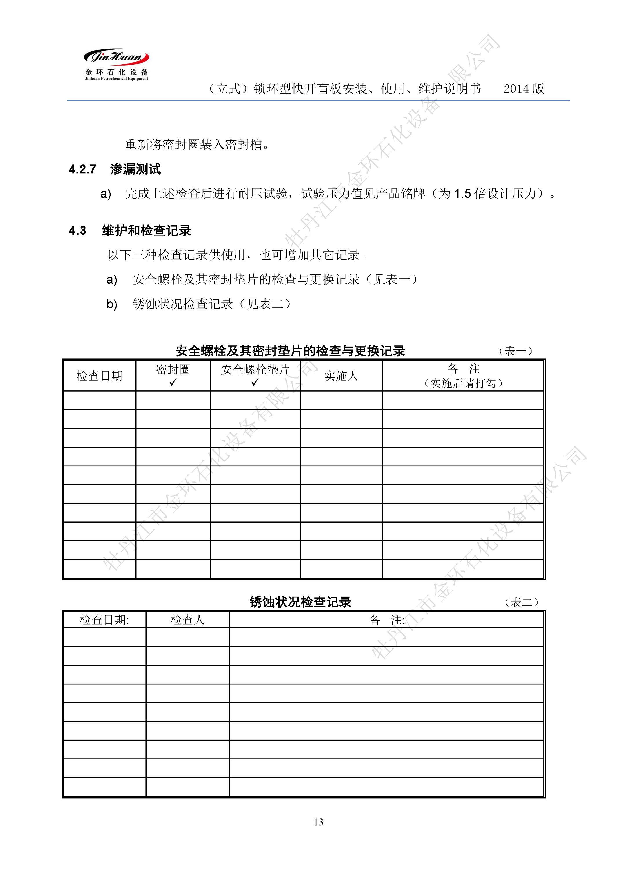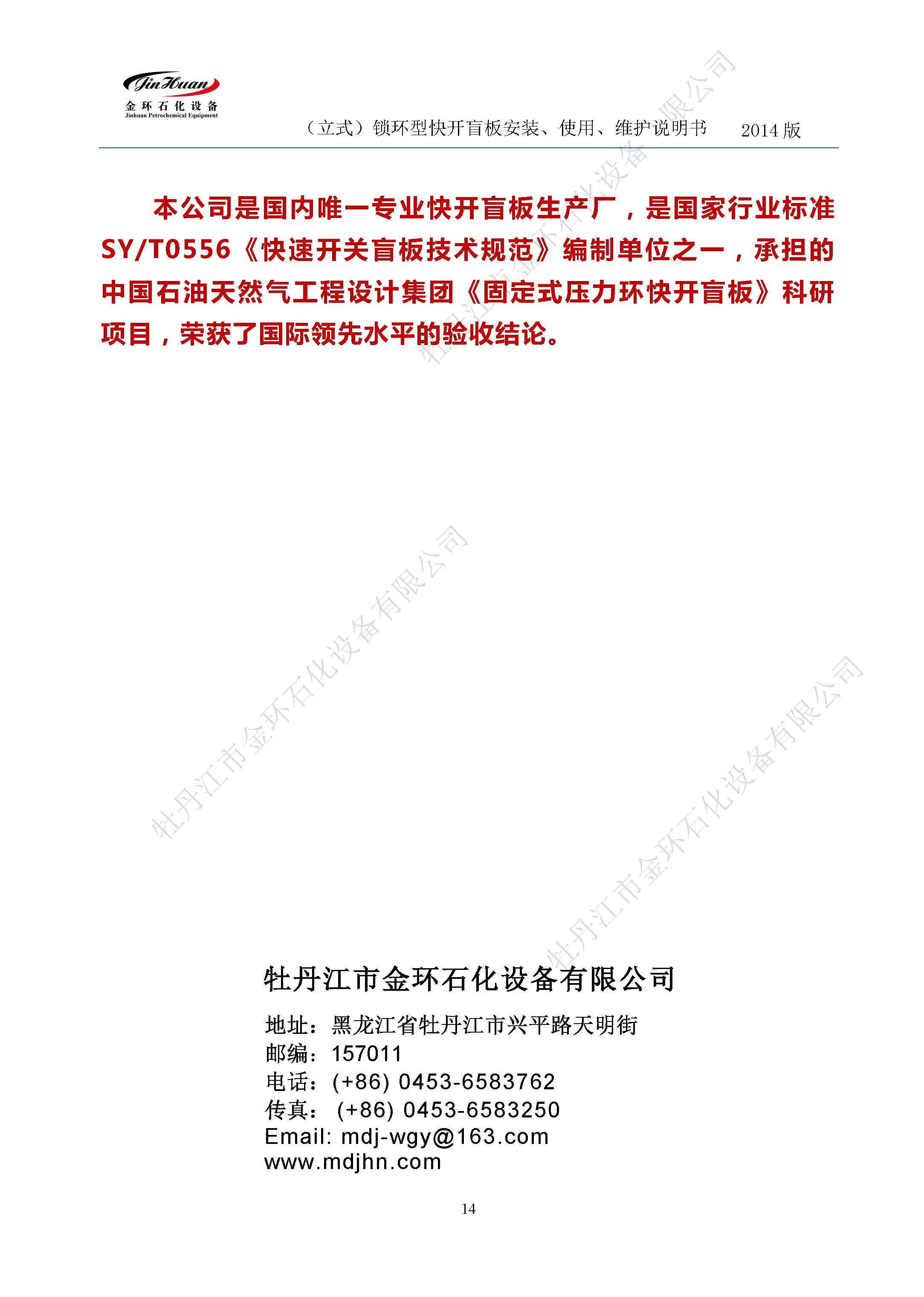 鎖環(huán)立式快開盲板說明書